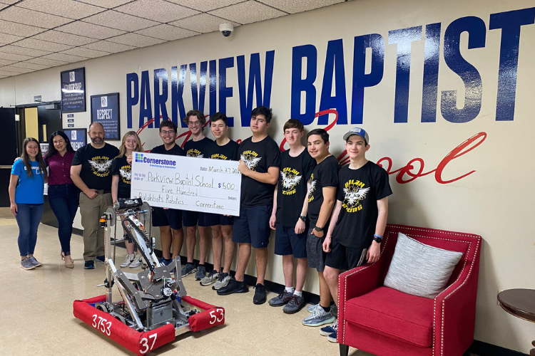 Cornerstone presented a sponsorship of $500 to the Parkview Baptist School Bulahbots Robotics club.