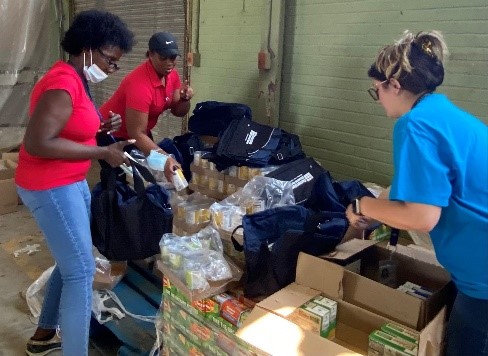 SpartanNash donated and delivered non-perishable food items and over 1,000 cases of bottled water to Cornerstone Energy Park following the devastating impact of Hurricane Ida. This generous donation assisted employees at Cornerstone Energy Park and our neighbors in the surrounding community. Cornerstone volunteers spent the day packaging these items into Cornerstone Care Packages to distribute to employees and residents of the local community.