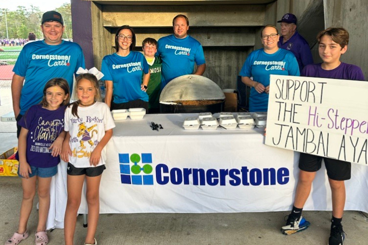 Cornerstone supported Hahnville High School’s dance team, the Hahnville Hi-Steppers, by cooking for their jambalaya fundraiser.