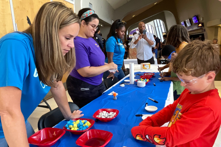 At ‘Spooky Science Saturday’ at Louisiana State University, Cornerstone volunteers led young learners through a spooky magic melamine sponge activity at Cornerstone’s table.